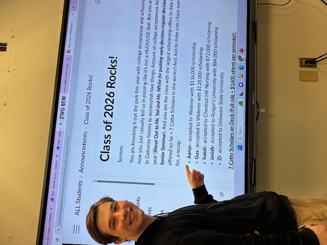 Aaron has maintained a 3.4 high school GPA and has achieved a 95% monthly attendance rate as a dual enrollment student. His commitment to his studies has allowed him to earn 43 transferrable college credits. He plans to continue his studies in business at Widener University and was offered a $136,000 scholarship.